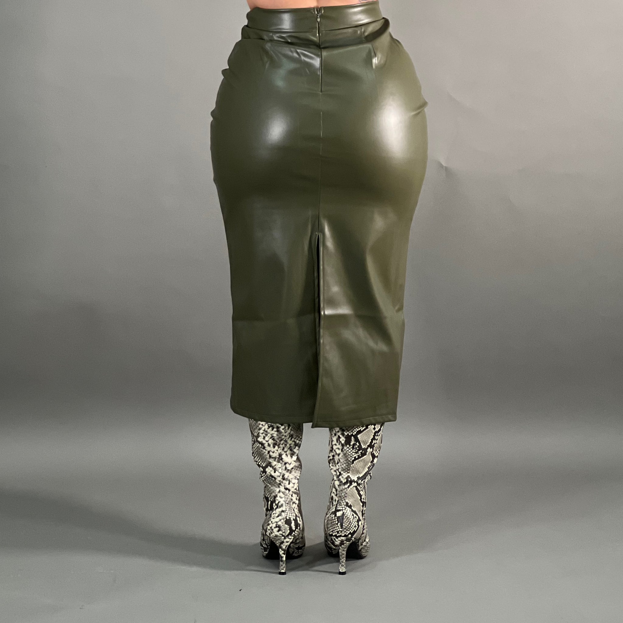 High waisted longline vegan leather skirt