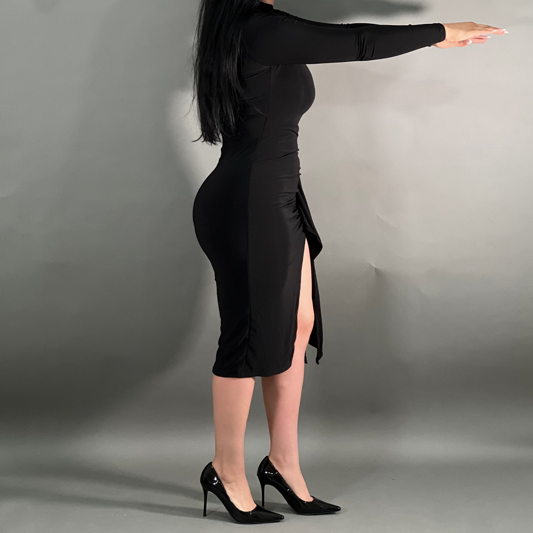 Mock neck drapped dress