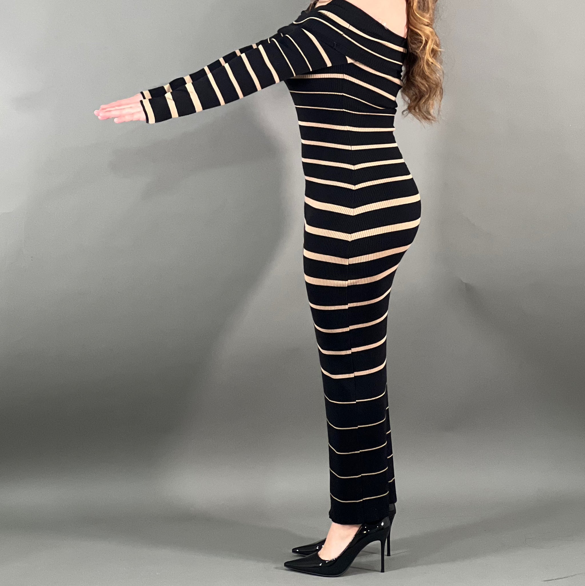 Striped ribbed knit dress