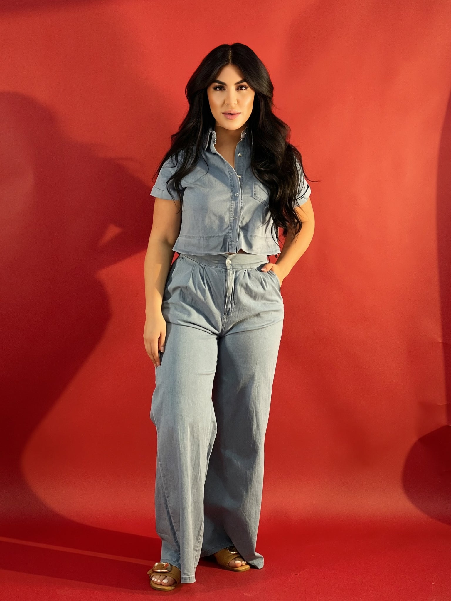 Boxy short sleeve chambray set