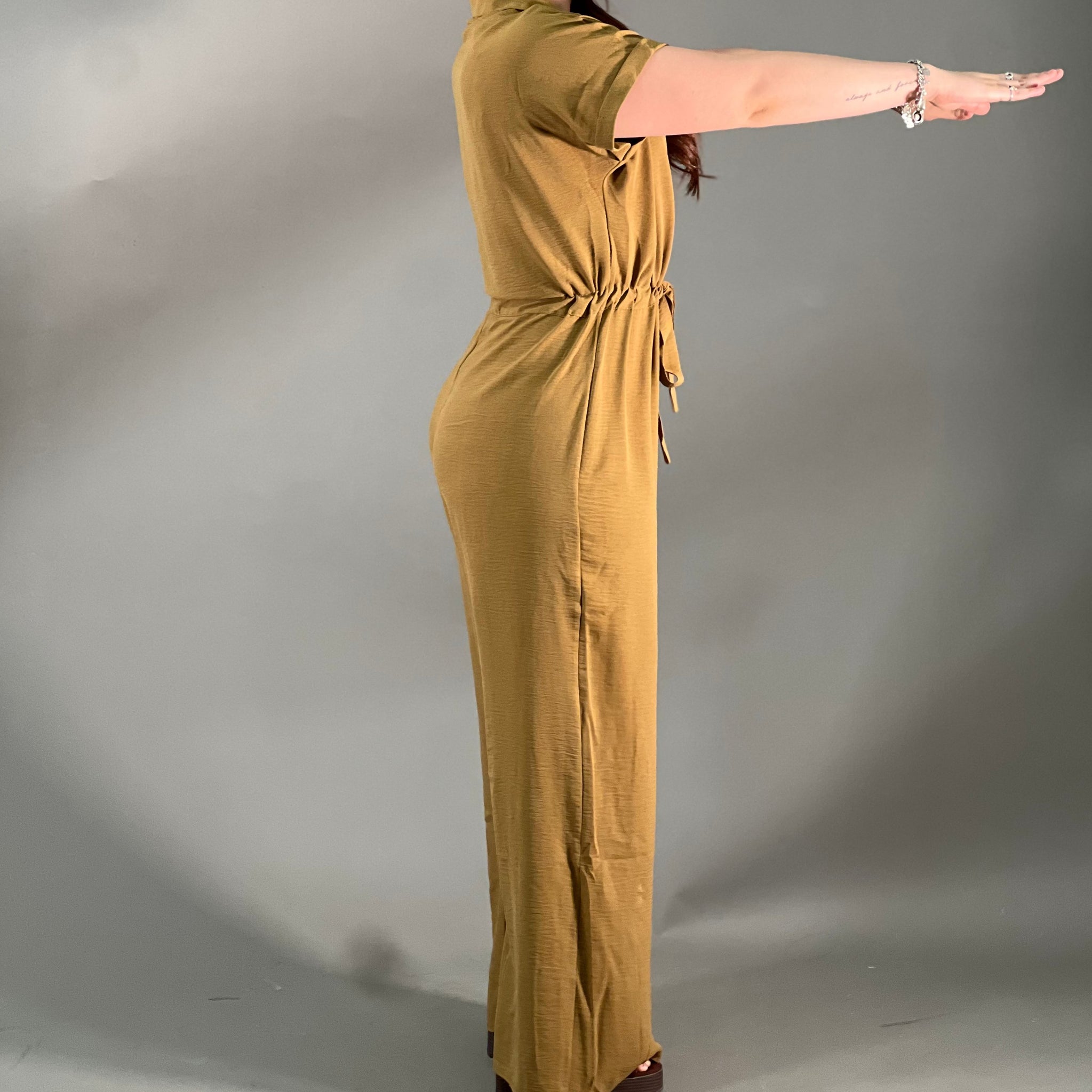 Utility fit draw string waist band jumpsuit