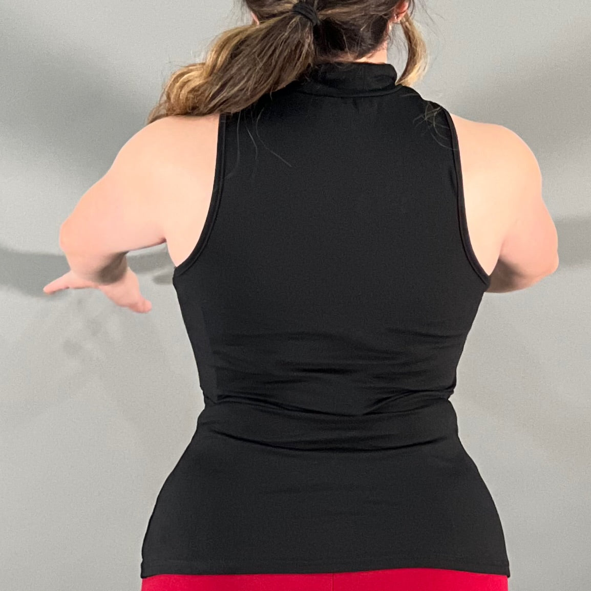 Gold brooch detail mock neck top