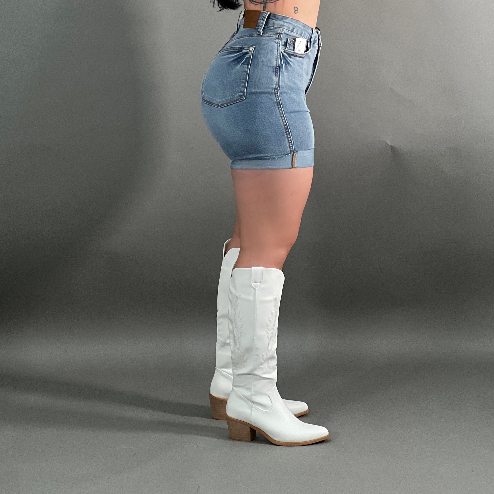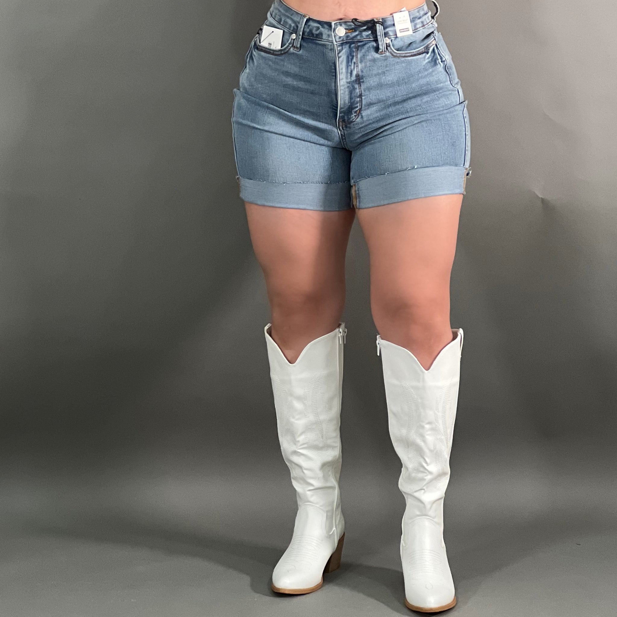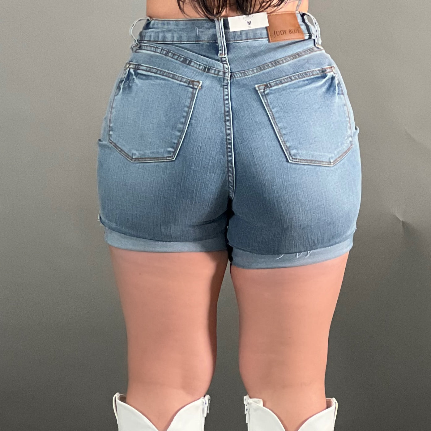 Stretchy tummy control Judy blue cut off roll up mom shorts
