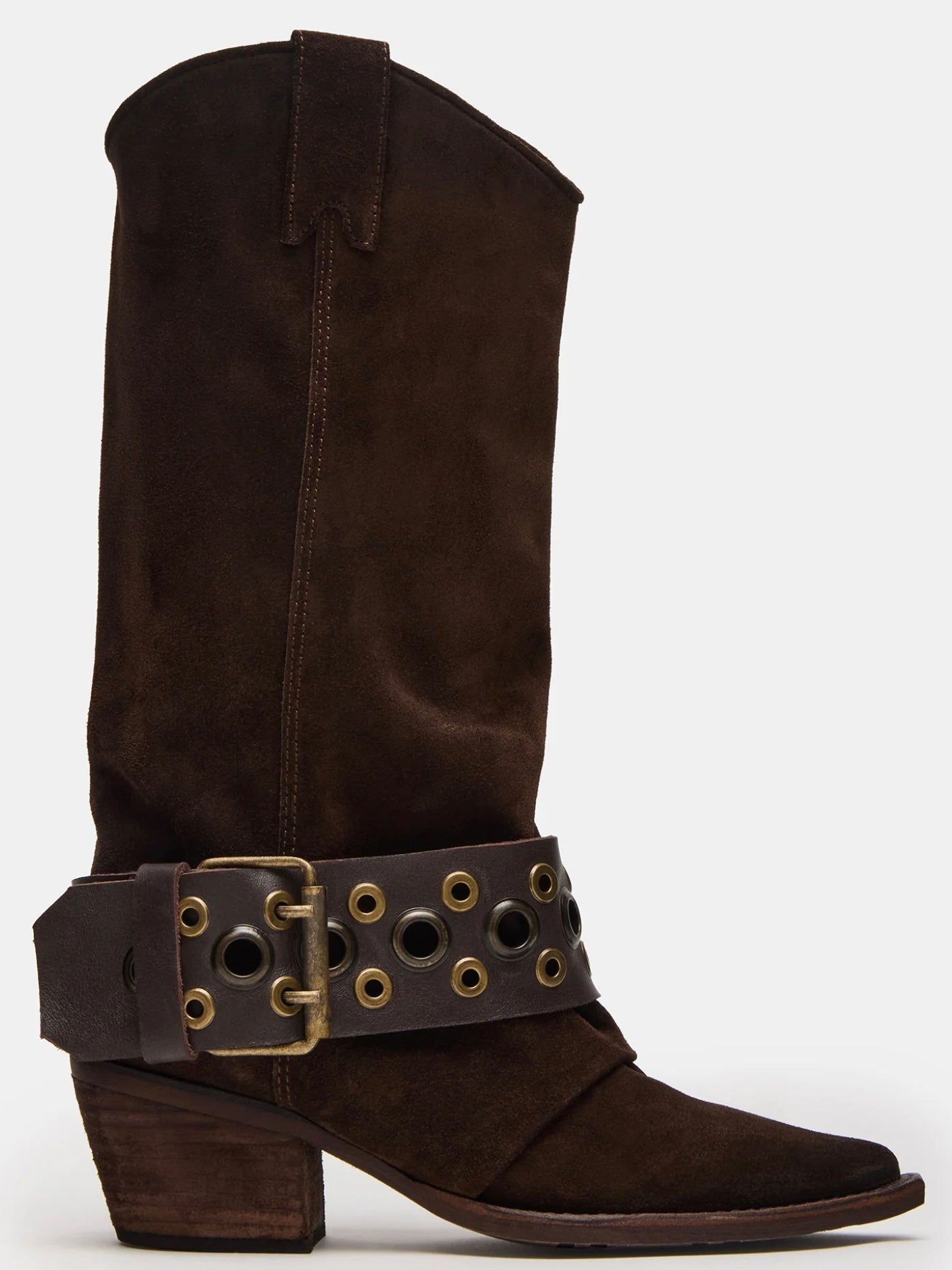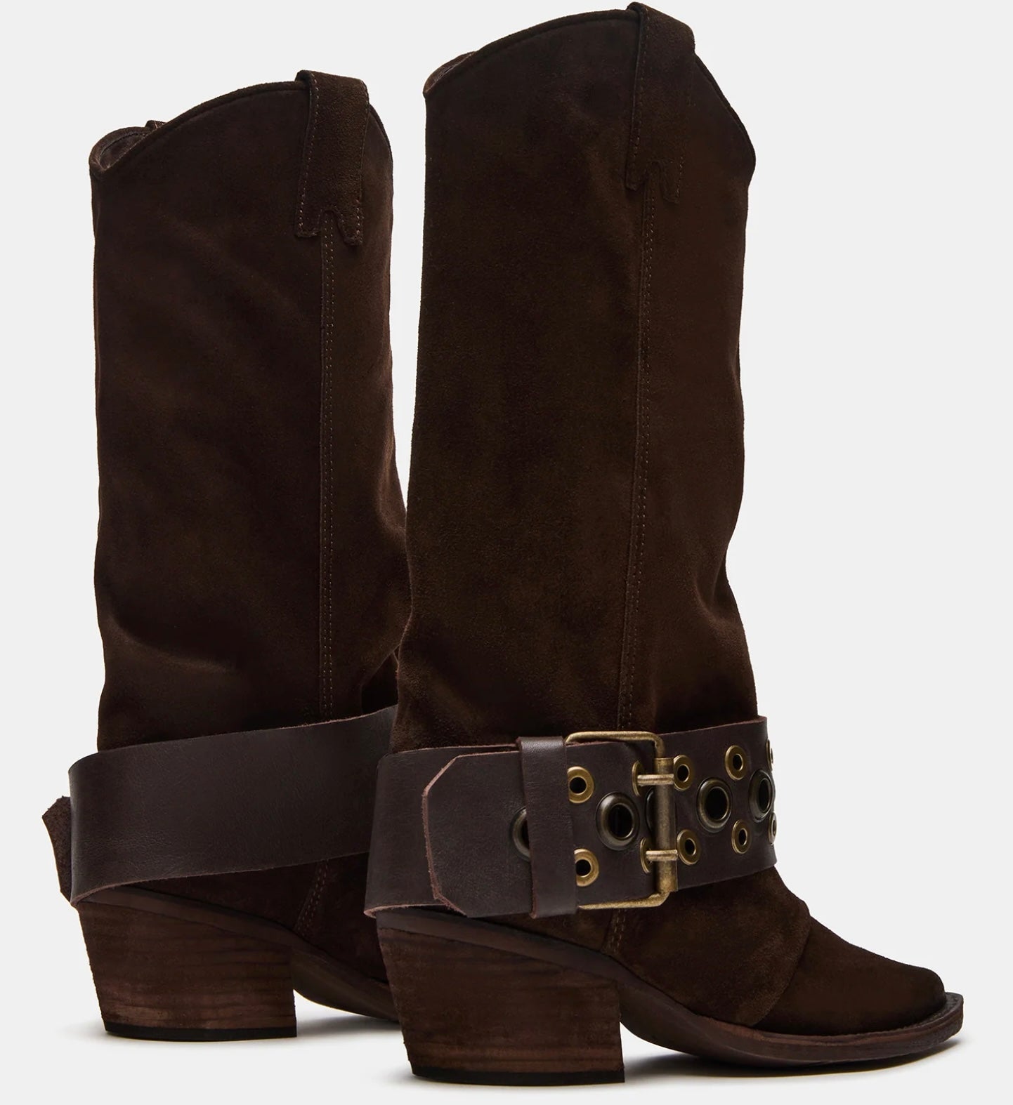 The ASHWOOD boot combines classic Western style with modern detailing. Featuring a pointed-toe, it offers a sleek silhouette. A distinctive belt strap with a buckle adds a unique, refined touch, enhancing both style and fit. Perfect for those seeking expert craftsmanship and standout design in their footwear.